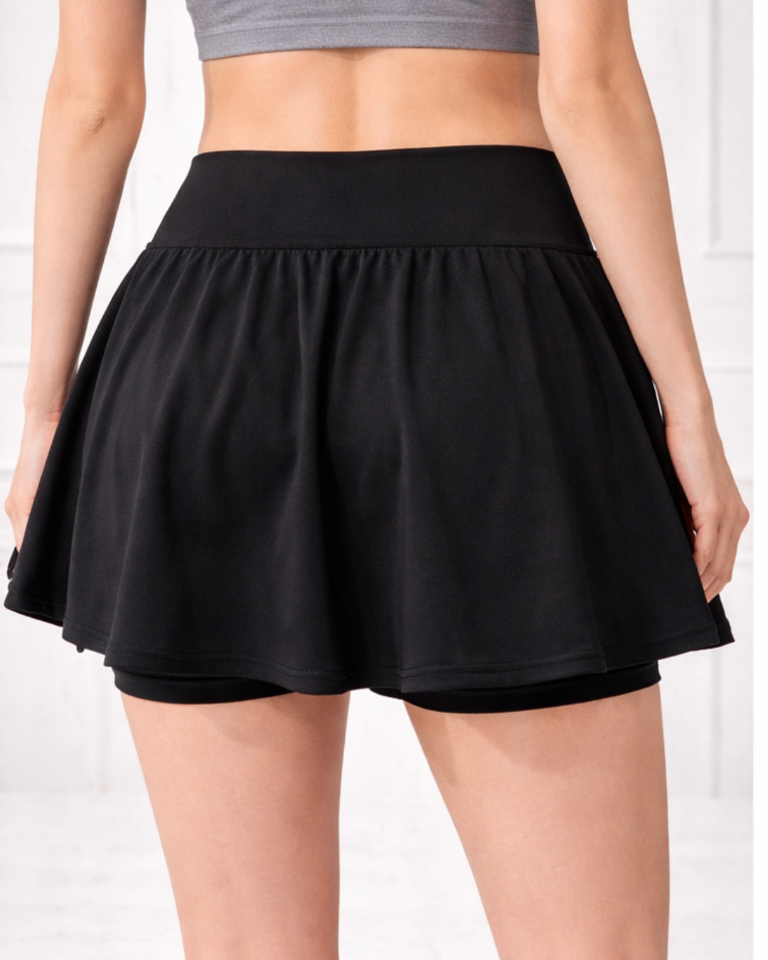 Soft drape outer layer moves naturally with every stride and pivot for effortless motion.